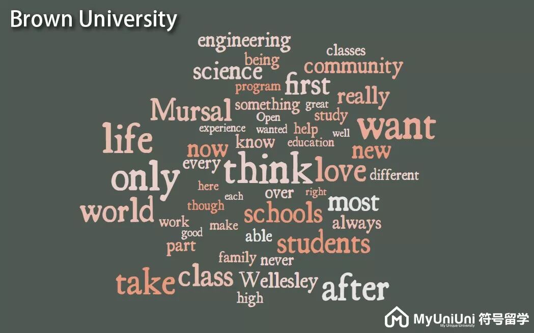 布朗大学(Brown University),它是常春藤学校中最特别的一所学校。布朗大学特别强调和崇尚自由,在录取方面自然也格外独树一帜。它偏爱术有专攻的人才并重视一个人对于个人的责任的承担能力的体现,尤其重视一个人的自我控制能力和自我学习能力。学校认为,如果学生想成功,只要找到并学会自己喜欢做的事情就可以了。布朗也是最为开放的顶尖大学之一,在这里一片和谐,你不为竞争而烦恼,we are 伐木累!