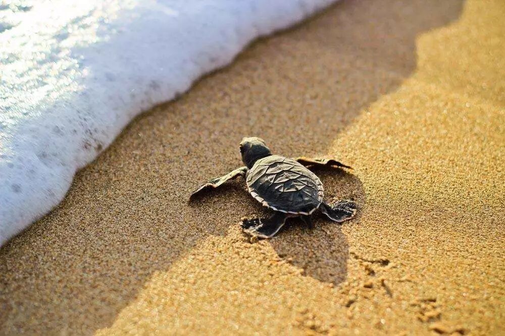 在海边,无数的海龟在辛勤地筑巢,期盼着着下一代的诞生。不过这一切并不是一帆风顺的,从龟巢到大海需要经过一段漫长的沙滩,稍不留心,它们的宝宝便可能成为无数鸟类的美食。那天我们到达时,运气很好,很快就发现一只大龟巢。这时一只小龟把头探出巢穴,却欲出又止,似乎在侦察外面是否安全。正当小龟踌躇不前时,一只海鸥突然飞来,用尖嘴啄它的头,企图把它拉到沙滩上去。惠于心不忍,赶忙抱起它,朝大海疾奔。那只海鸥眼见到手的美食丢掉,只好颓丧地飞走了。然而,接着发生的事却让她大吃一惊。她抱走幼龟不久,成群的幼龟从巢口鱼贯而出。此刻她才意识到自己干了一件多么愚不可及的蠢事。那只先出来的幼龟,原来是龟群的“侦察兵”,一旦遇到危险,便会返回龟巢。那只幼龟被惠引向大海,巢中的幼龟因此得到错误信息,以为外面很安全,于是争先恐后地结伴而出。一湾静谧的沙滩见证着如此惨烈的一幕。从龟巢到海边的大段沙滩,无遮无拦,成百上千的幼龟结队而出,很快便引来许多猛禽大饱口福。不一会儿,数十只鸟儿就吃得饱饱的,欢快的啼鸣响彻云霄。